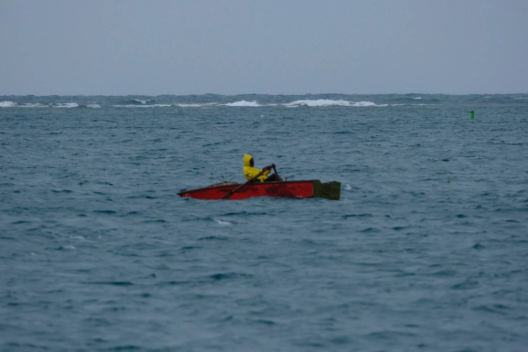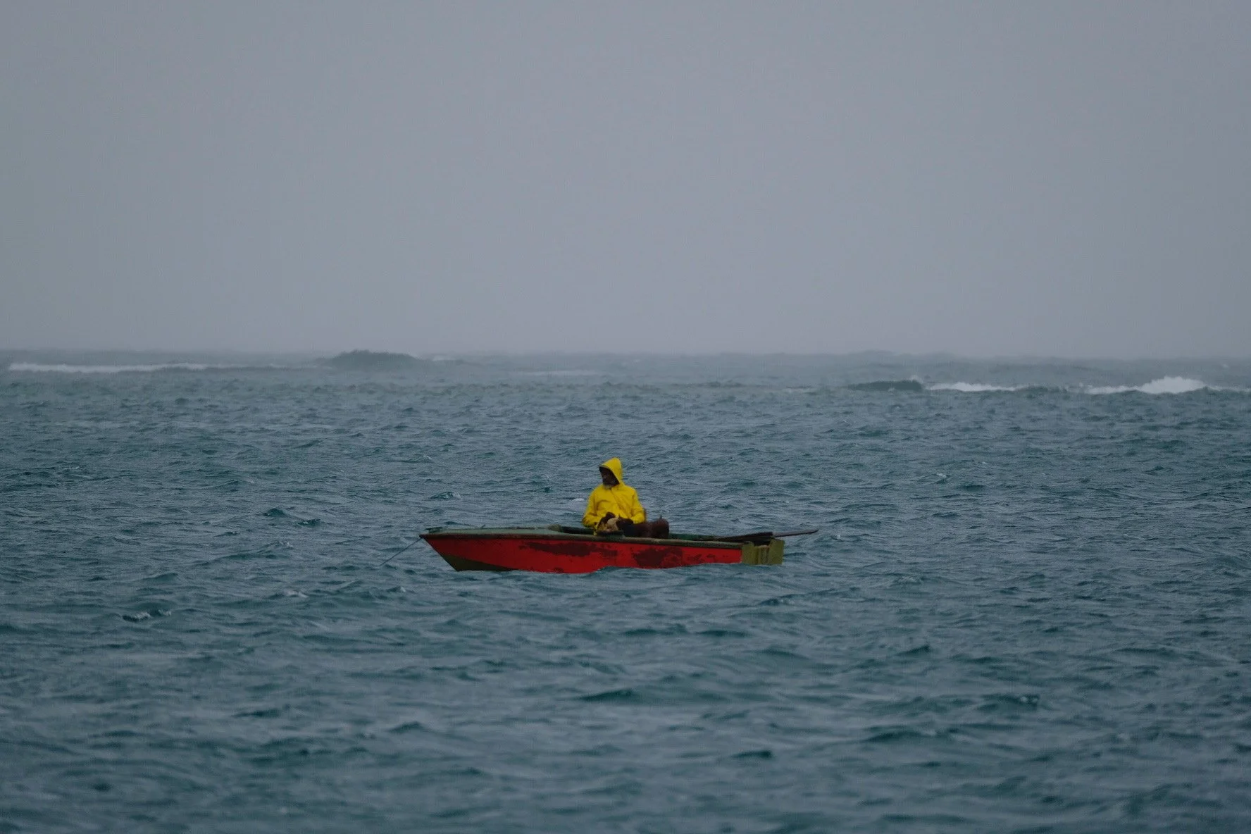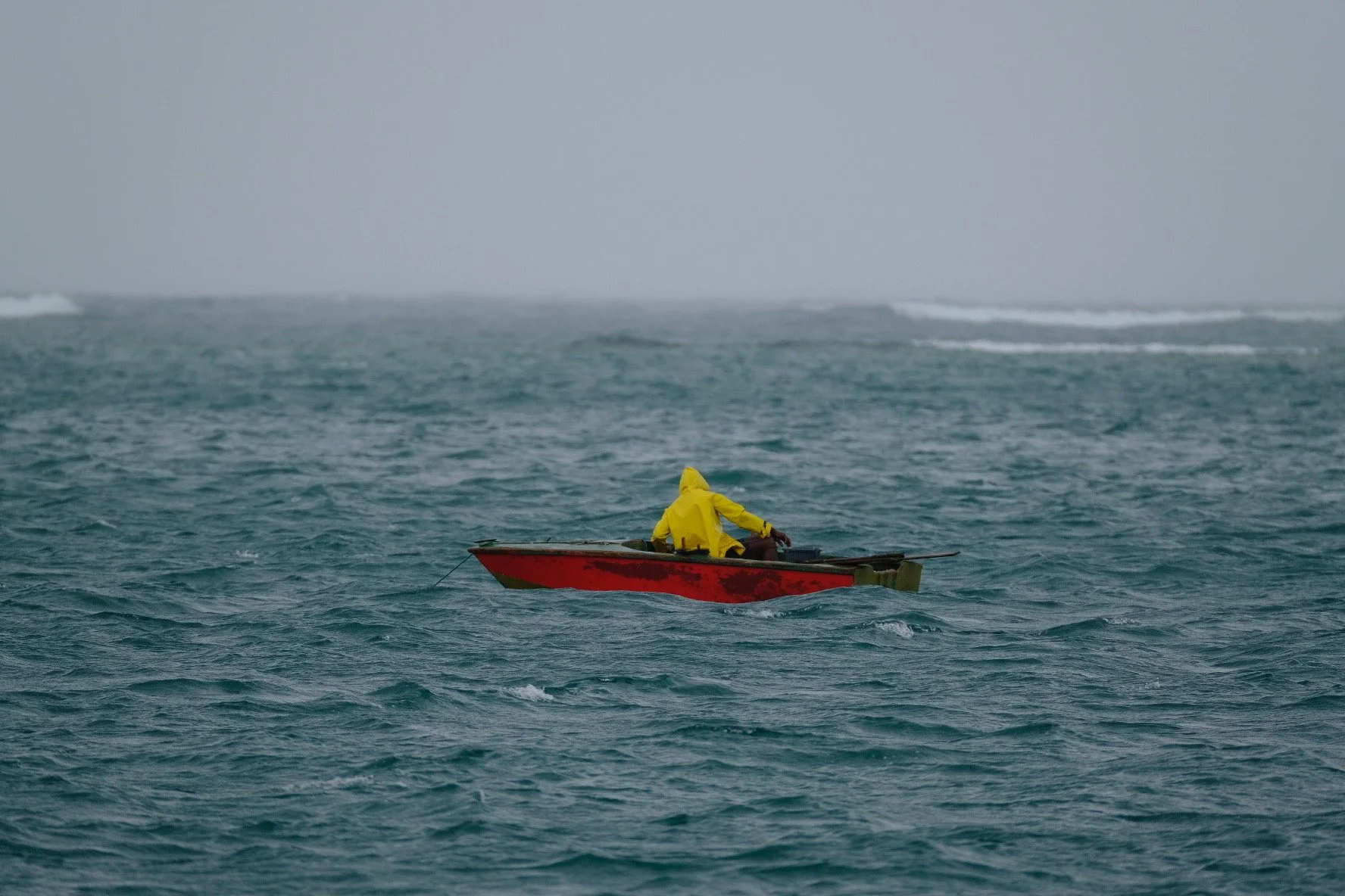admiring this early morning Woburn Bay fisherman braving the high wind and pouring rain.