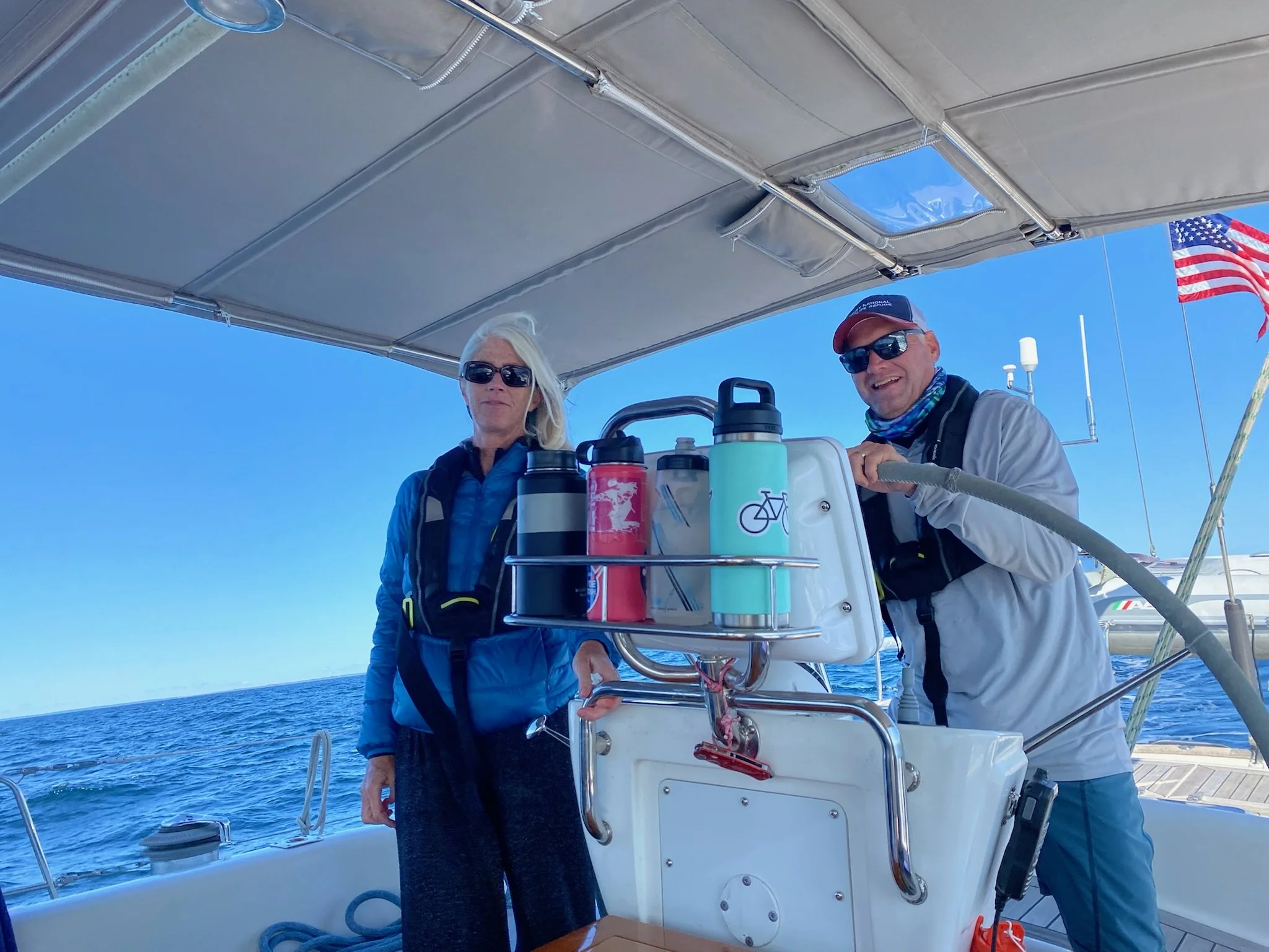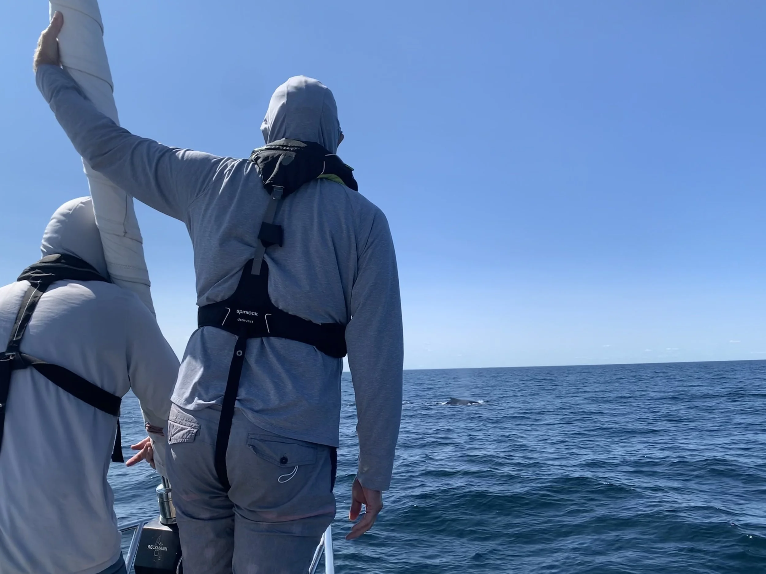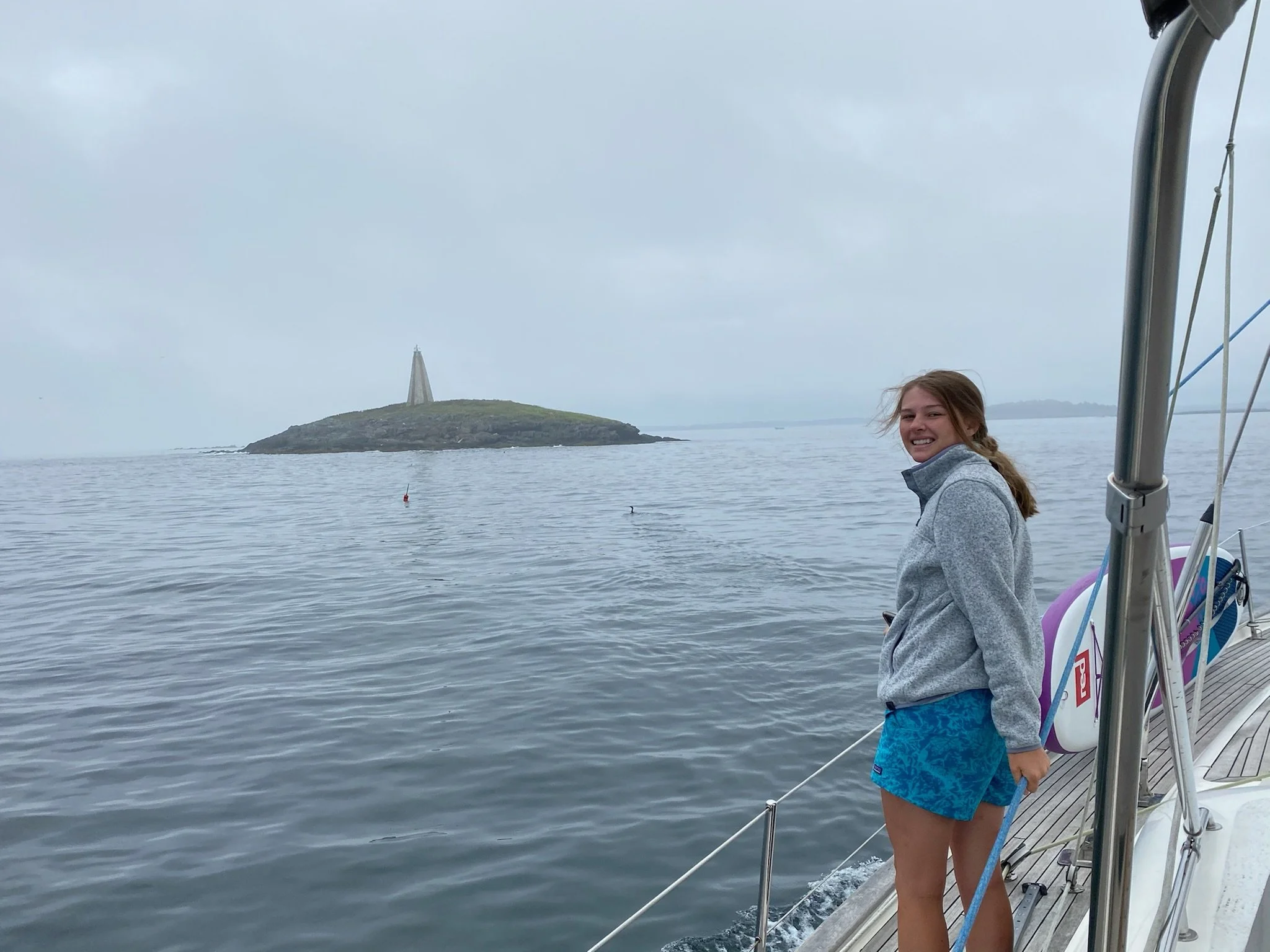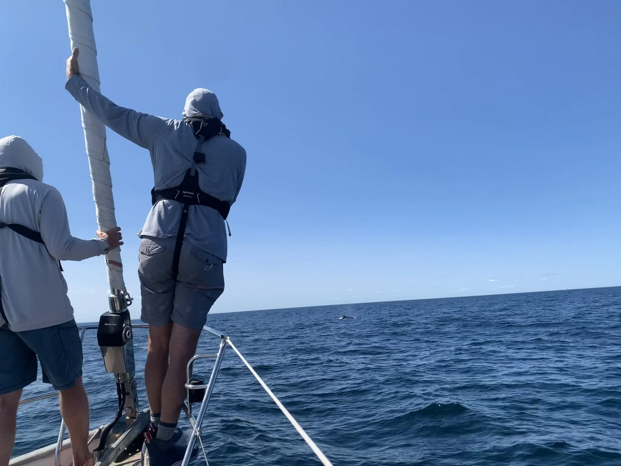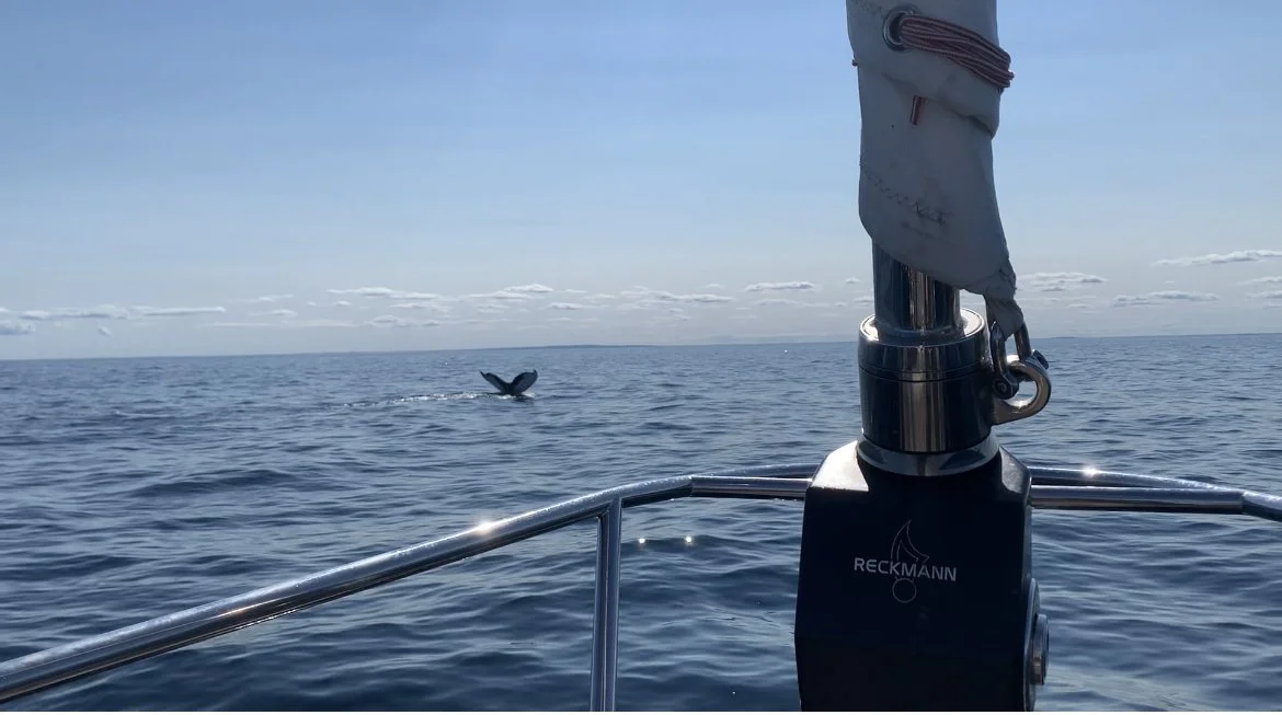 Grace was greeted by a Group of Humback Whales, including a Mama and baby, in Stellwagen Bank off the coat of Massachusetts on our way to Rhode Island. What a dream come true!