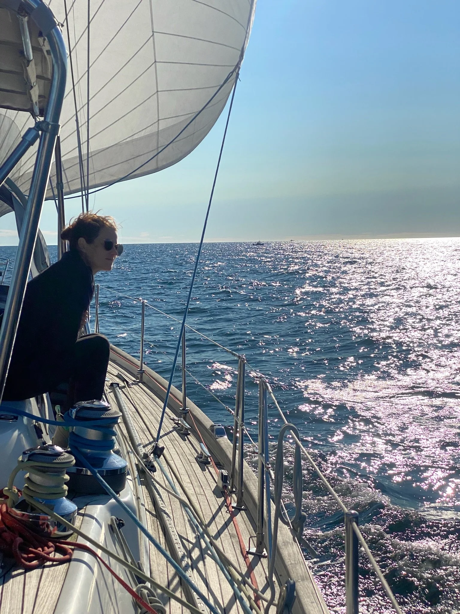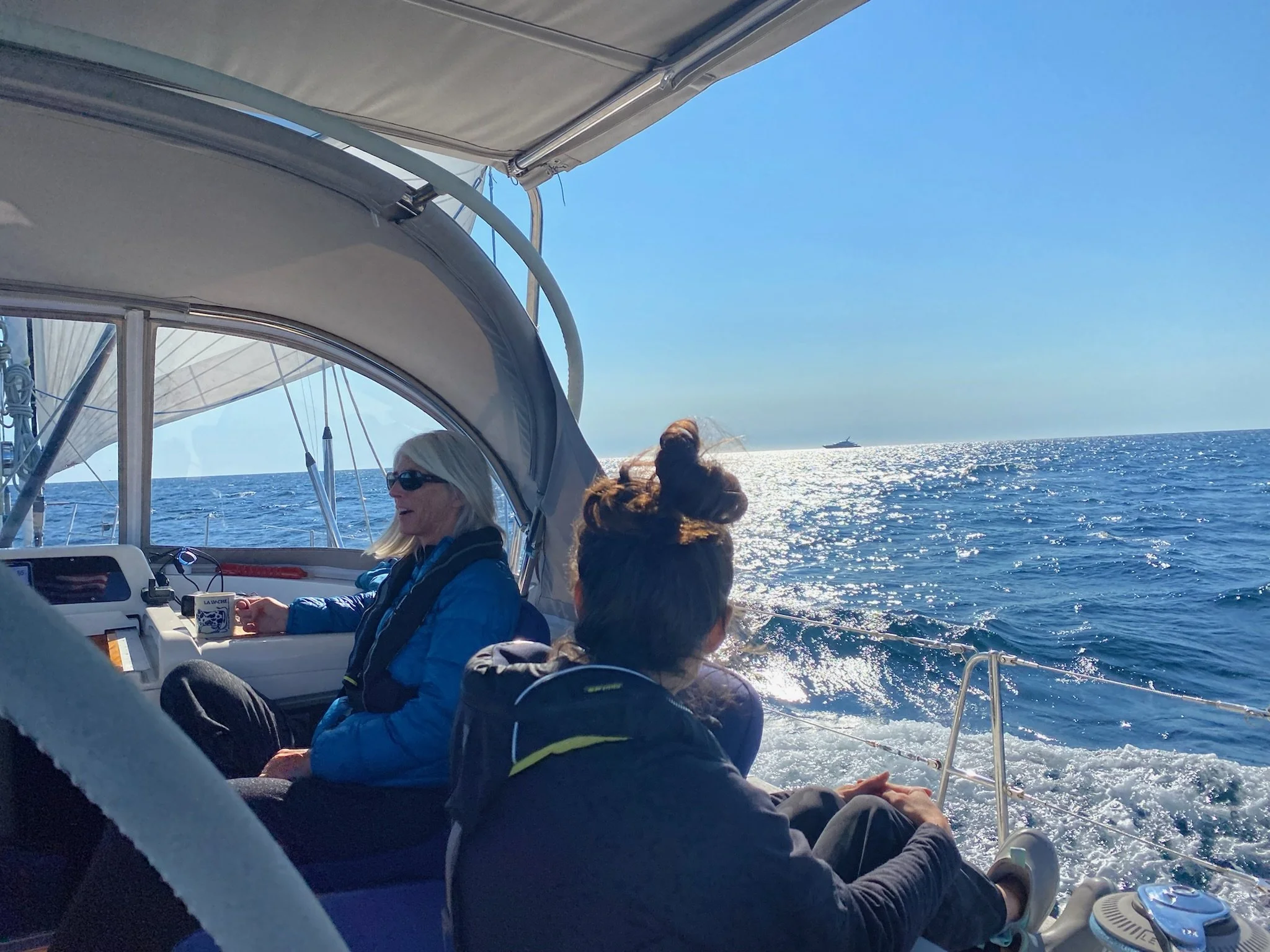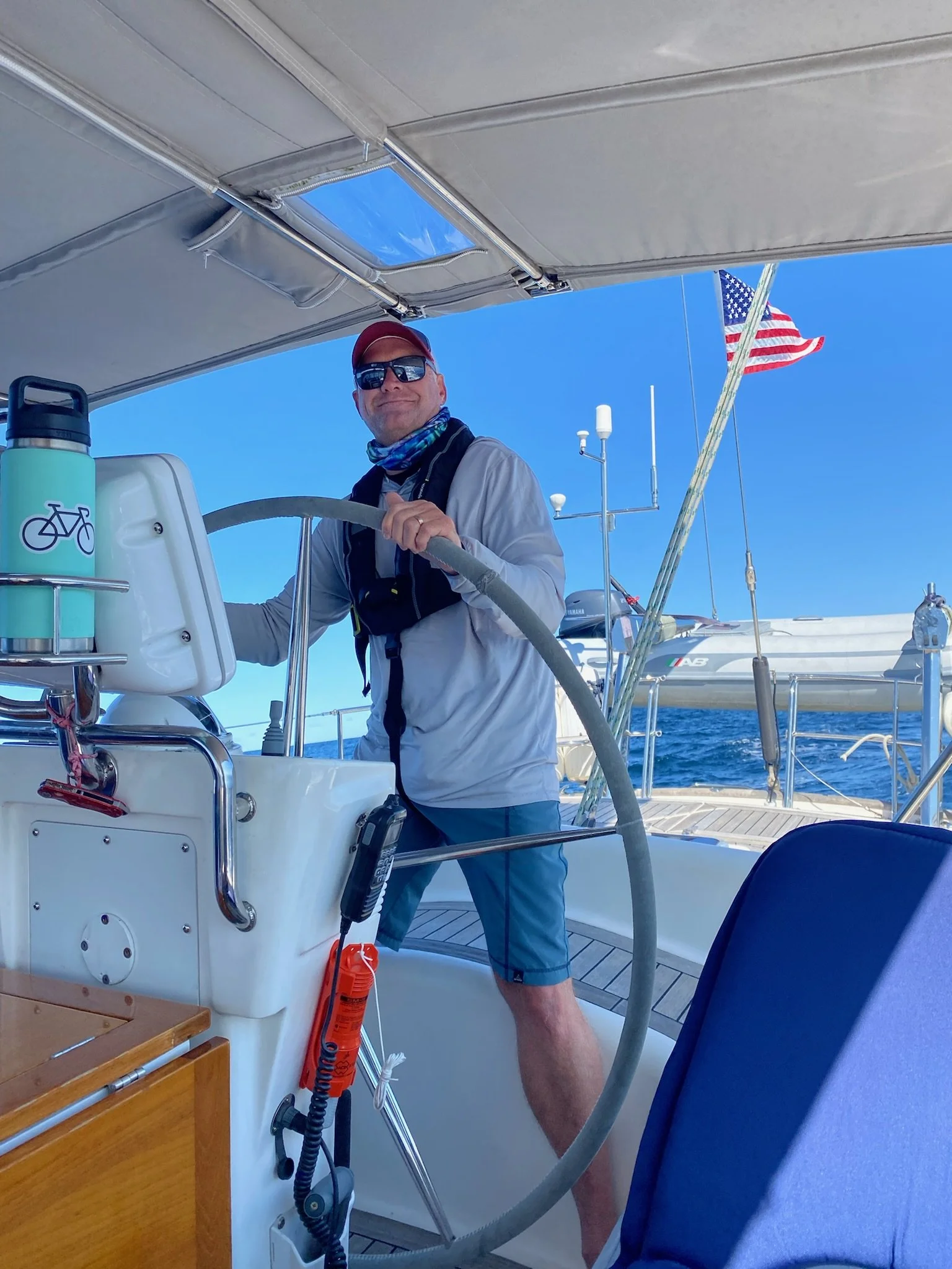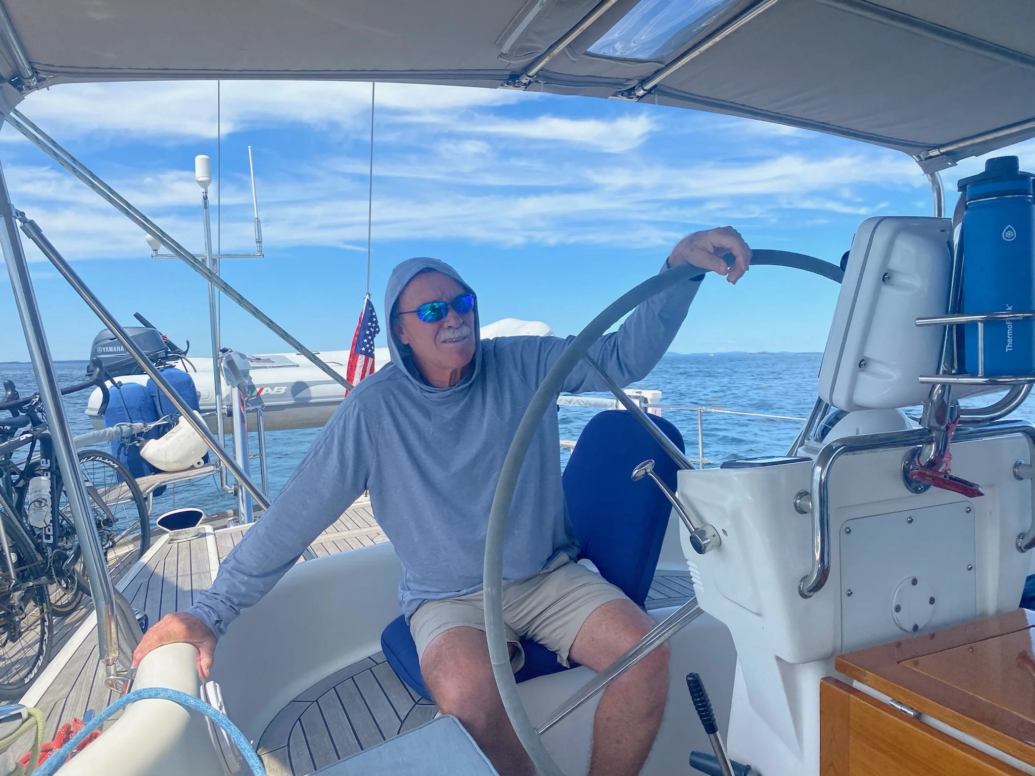 Grace was greeted by a Group of Humback Whales, including a Mama and baby, in Stellwagen Bank off the coat of Massachusetts on our way to Rhode Island. What a dream come true!