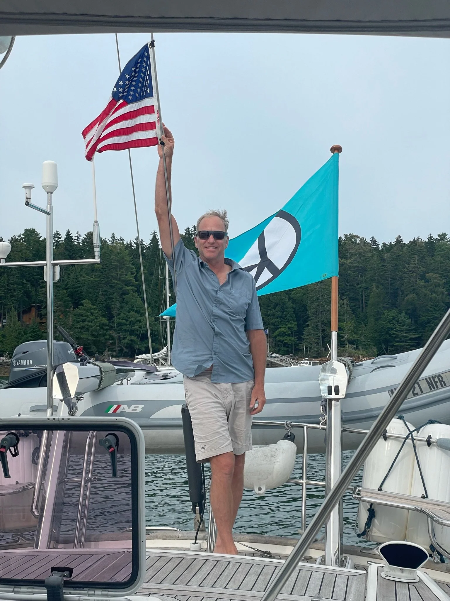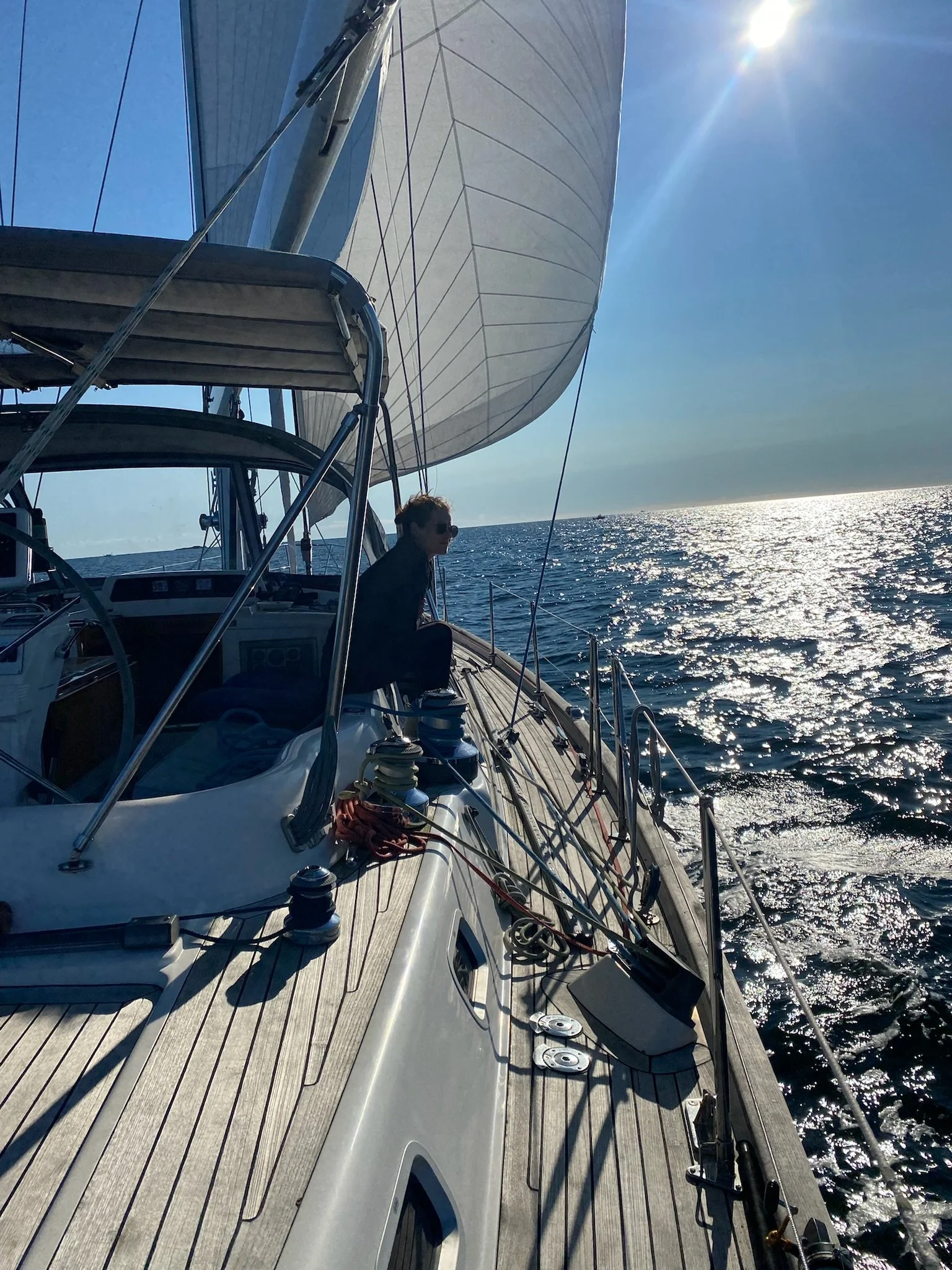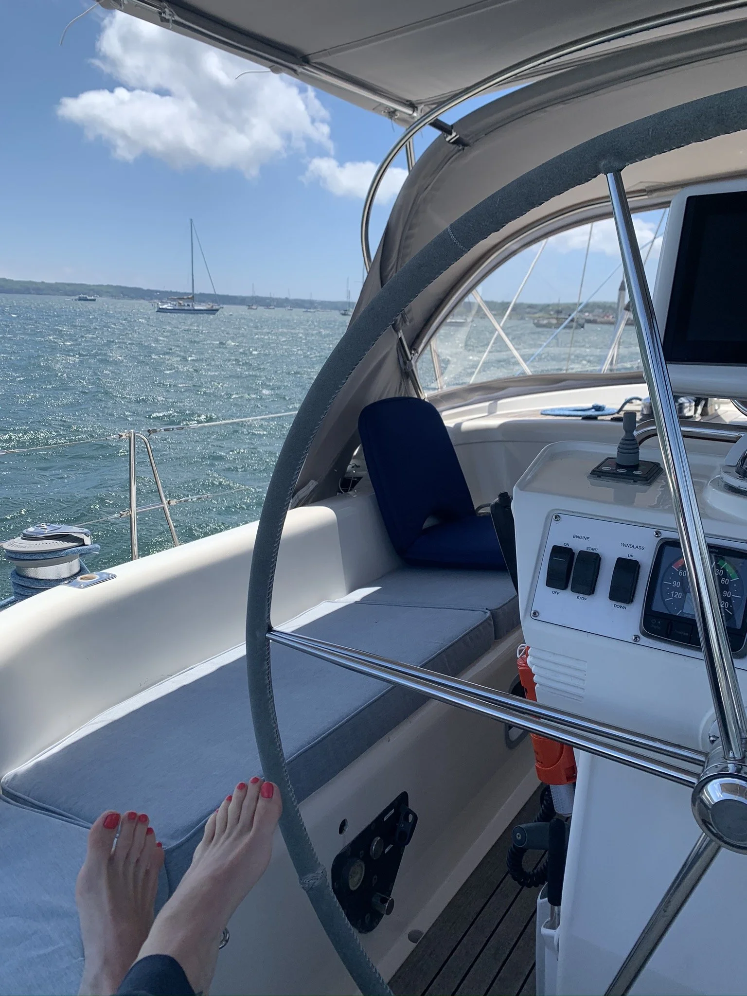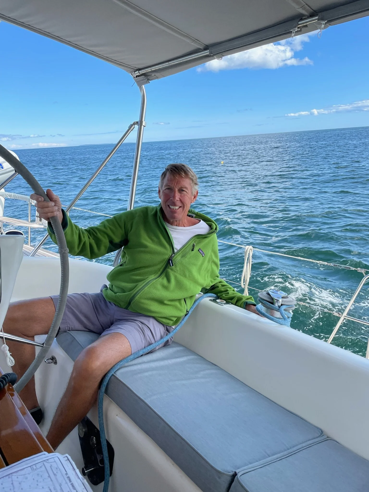 Grace was greeted by a Group of Humback Whales, including a Mama and baby, in Stellwagen Bank off the coat of Massachusetts on our way to Rhode Island. What a dream come true!